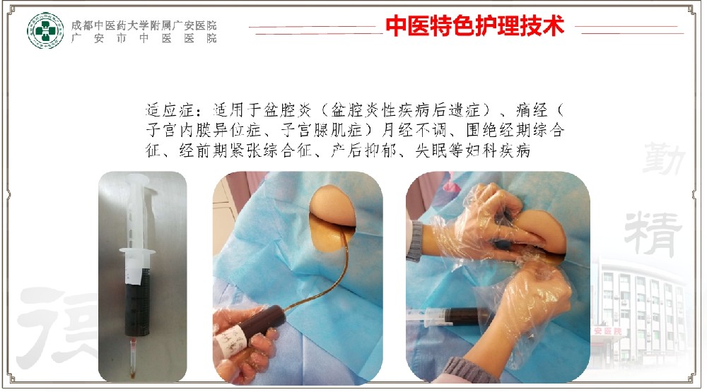 适应症:适用于盆腔炎(盆腔炎性疾病后遗症)、痛经( 子宫内膜异位症、子宫腺肌症)月经不调、围绝经期综合 征、经前期紧张综合征、产后抑郁、失眠等妇科疾病